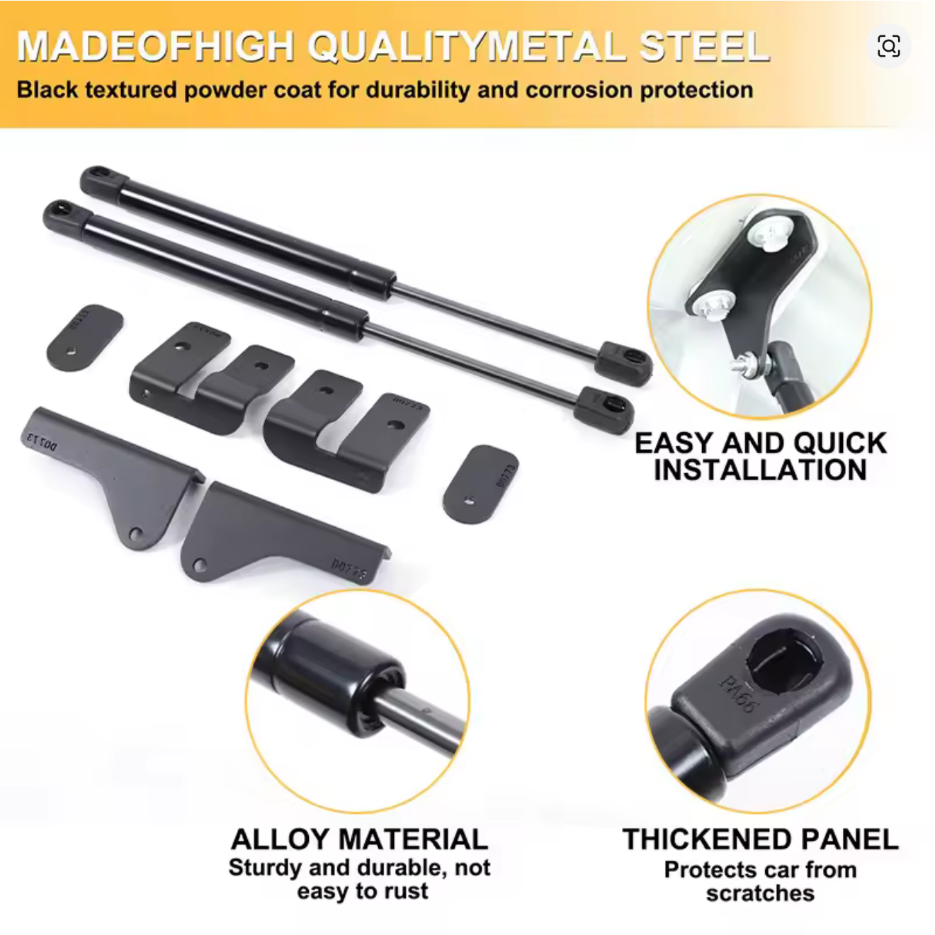 High end hydraulic hood lift that replaces the original manual hood lift to allow better functionality and easier to work on your Land Cruiser.